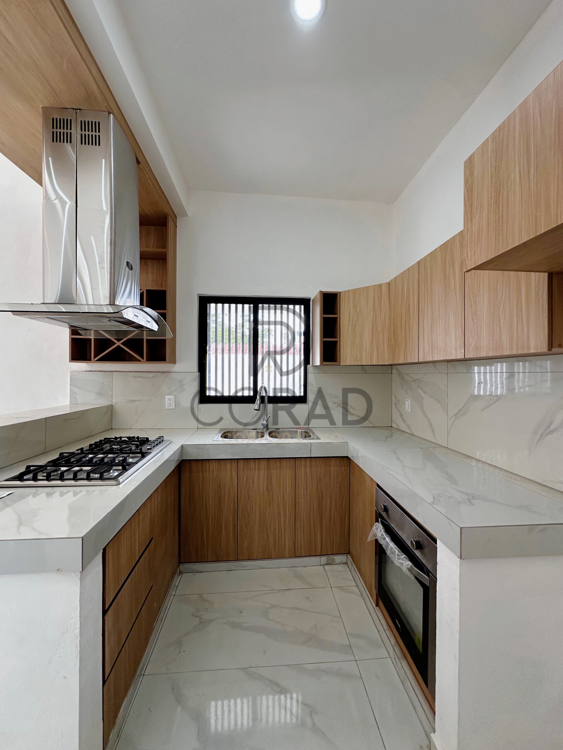 • Cocina  completamente equipada con parrilla, campana, horno, microhondas y alacena • patio de servicio independiente